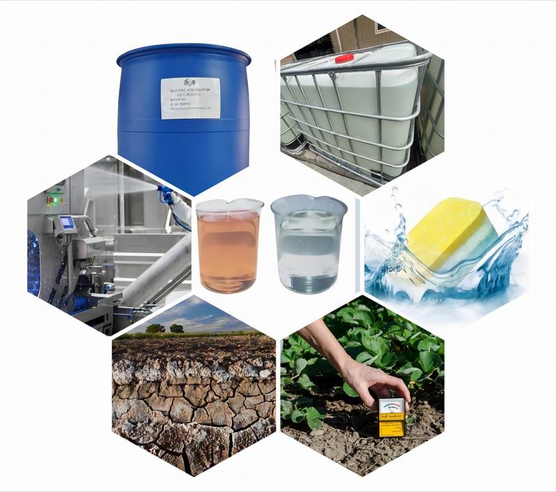 An aqueous solution of gluconic acid is commonly used as a food sourness agent,