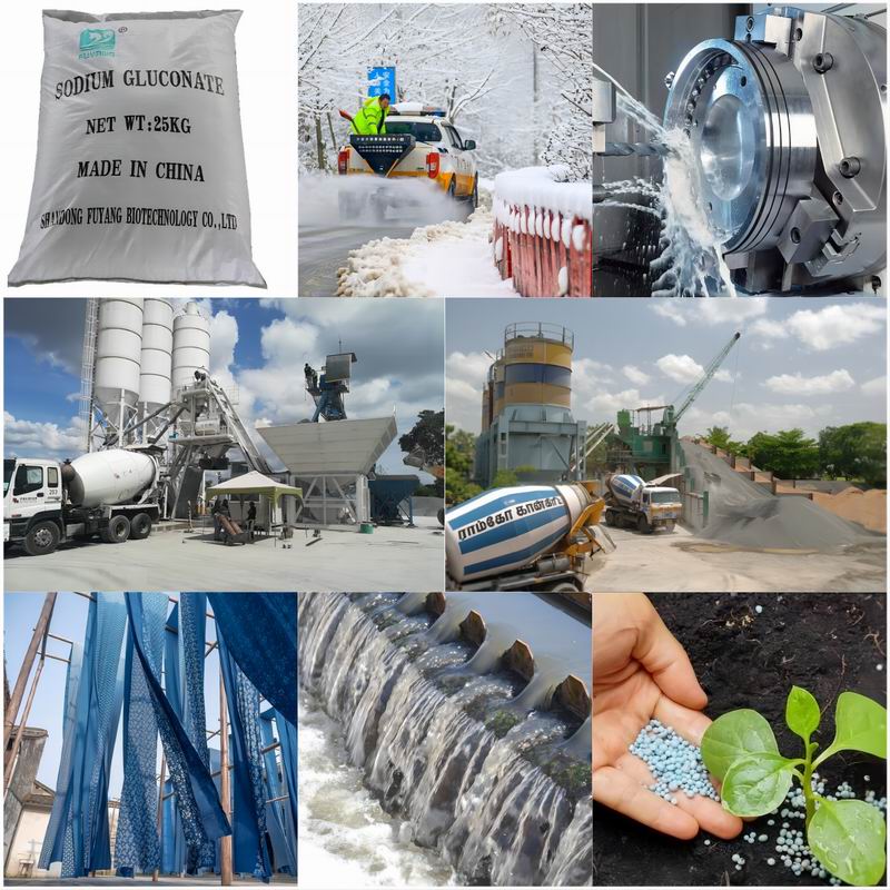 Chelate for cement: fixed amount of sodium gluconate in cement, then make the concrete strong and random. It can be delay the first time and the last time for solidity.