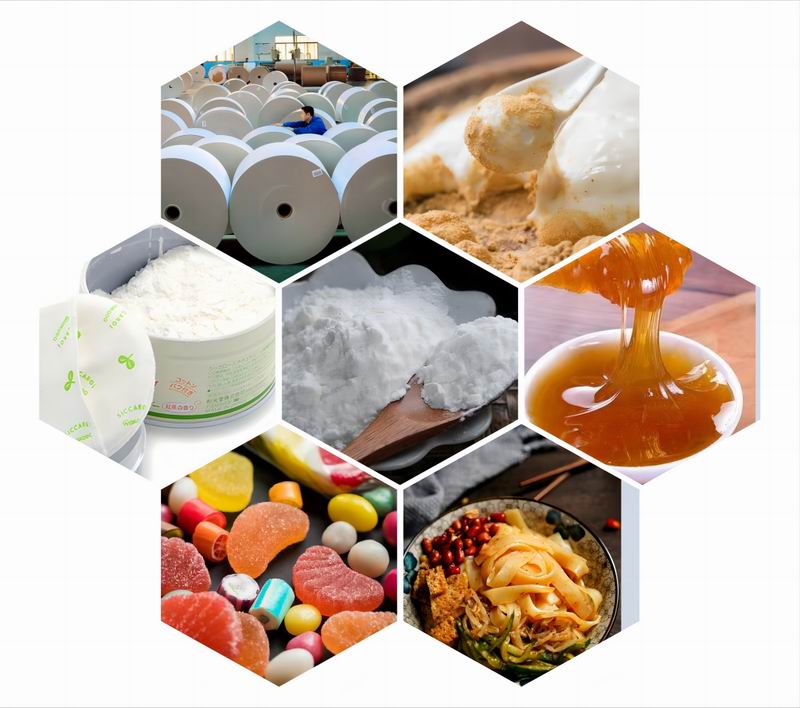 the snack food, bakery, confectionery, meat processing, sauces, ice-cream, beverage industries etc,paper-making.